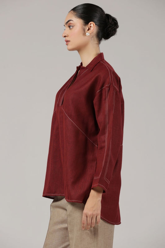Plum Contrast Stitch Relaxed Fit Cotton Top