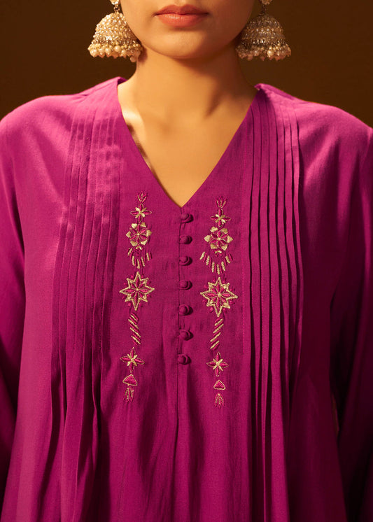 Mauve-Pink Embroidered Suit Set with Dupatta