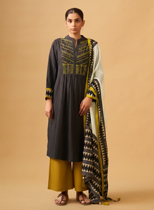 Textured Cotton Kurta Set with Handcrafted Details