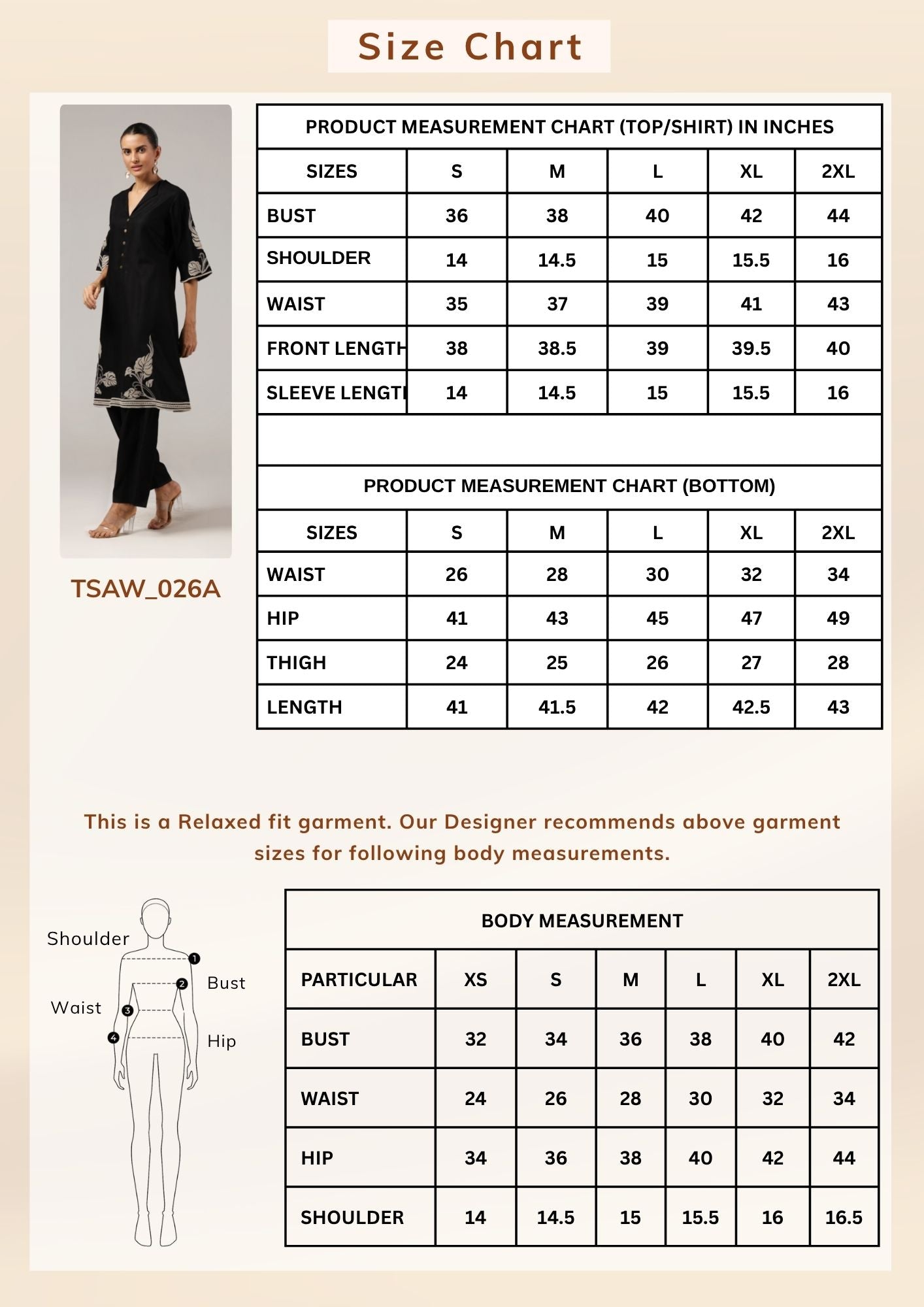 Black Floral Embroidered Kurta Set blends elegance with modern minimalism. Crafted in soft 100% Organic Cotton, the straight-fit kurta features delicate Off-White floral embroidery along the hem and sleeves, paired with matching straight pants. Perfect for festive gatherings, office wear, or elegant evenings — where sophistication meets comfort