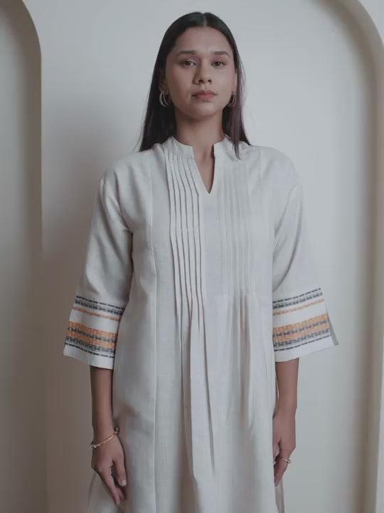 Cream & Mustard Handwoven Striped Cotton Kurta Set