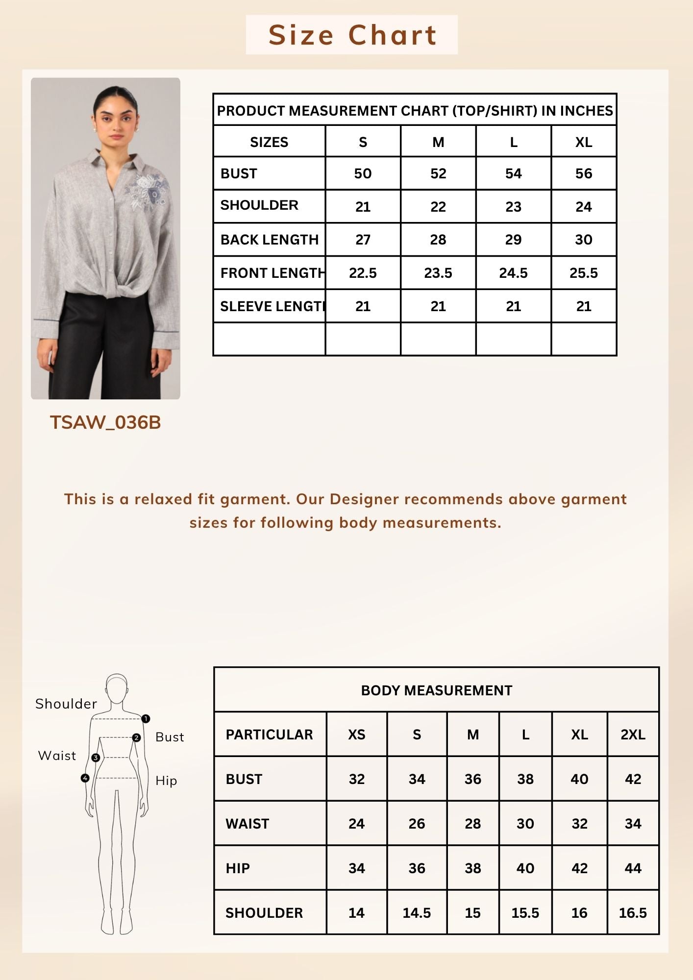 Mist Bloom Shirt blends timeless sophistication with modern ease. Crafted from breathable linen in a soft grey tone, it features elegant floral embroidery on the shoulder, button-down detailing, and a relaxed drape. A versatile essential that transitions effortlessly from workdays to dinner plans with understated charm