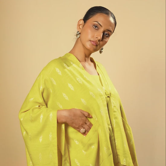 Mustard Yellow Handwoven Cape Blazer Set