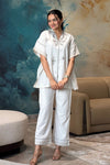Olive Embroidered shirt is a timeless fusion of sophistication and comfort. Designed in a rich olive tone, this set features intricate beige embroidery on a relaxed kaftan-style top with a V-slit neckline. Paired with straight-fit pants, it’s perfect for work meetings, festive luncheons, or stylish travel dressing