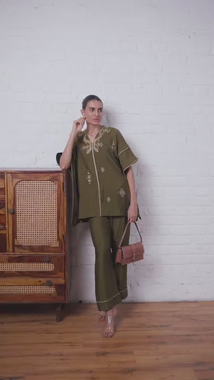 Olive Embroidered Co-ord Set